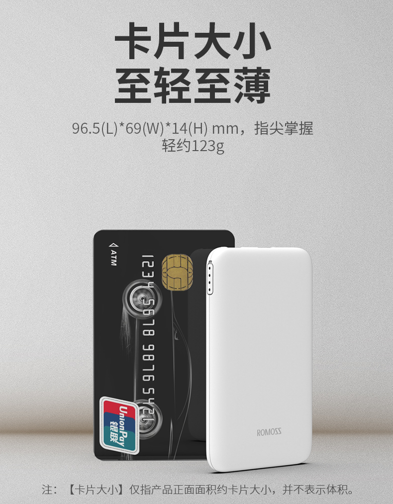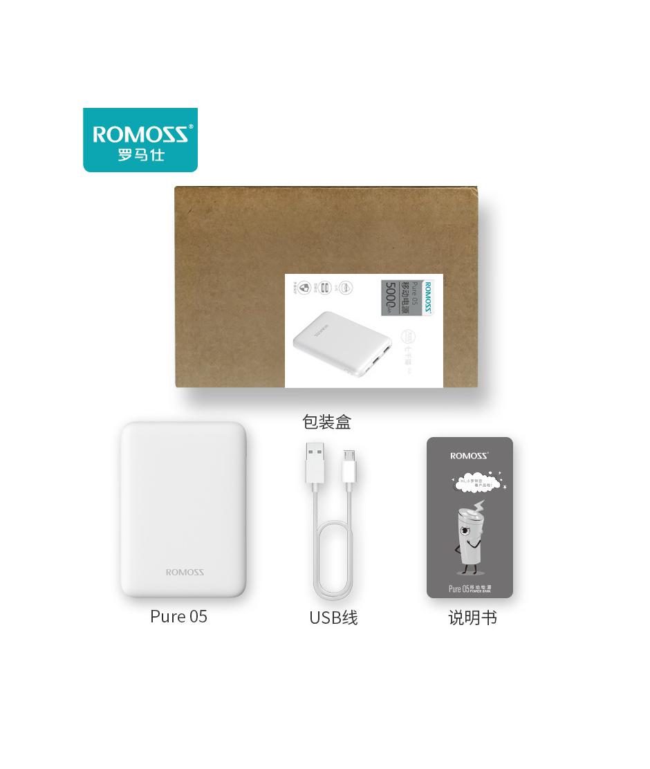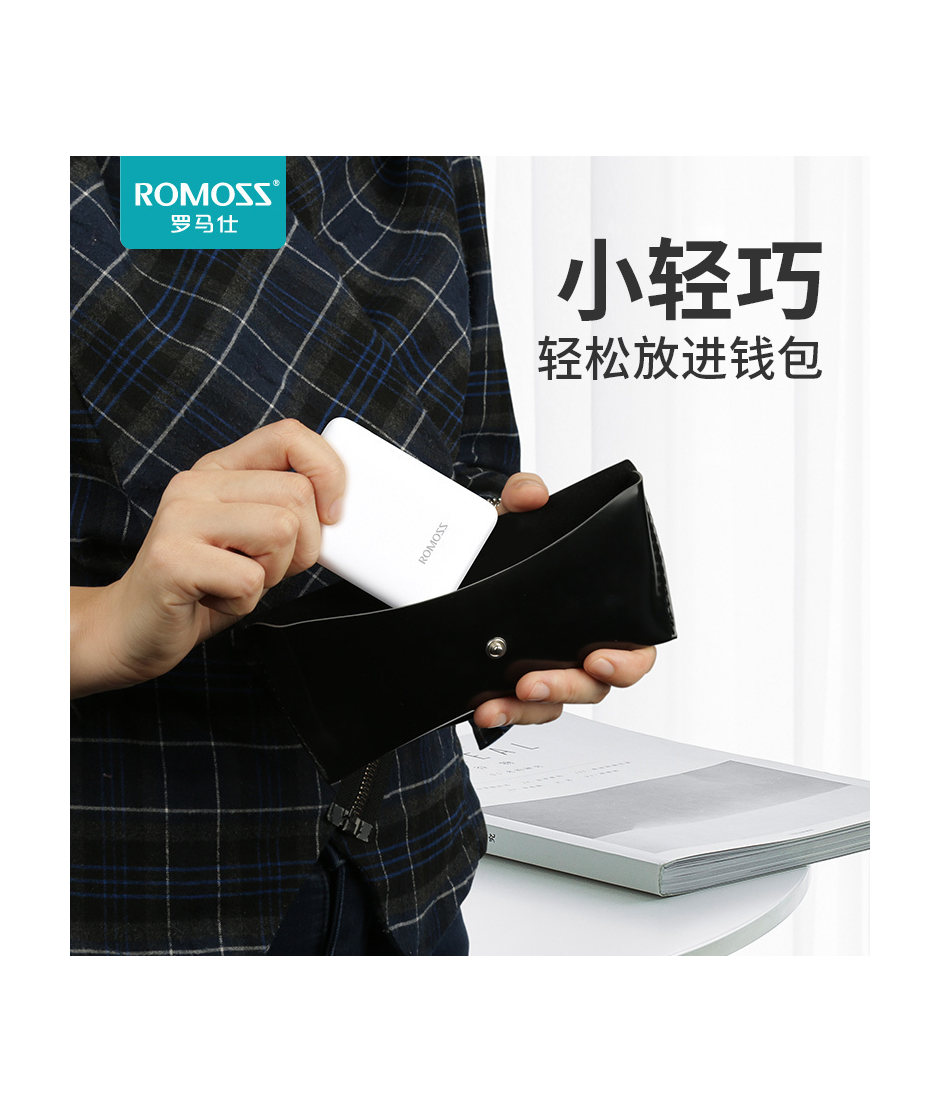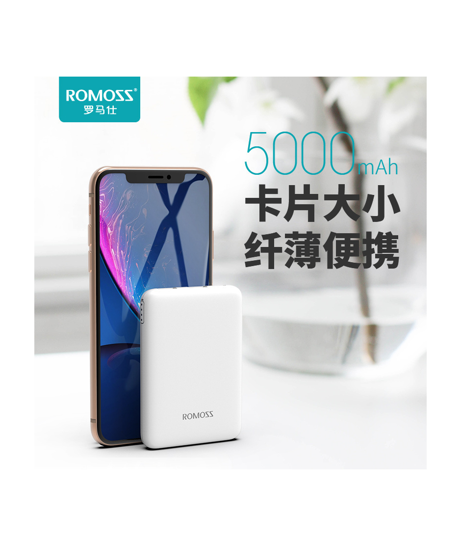 罗马仕(ROMOSS)充电宝5000毫安迷你纤薄聚合物锂离子电芯 移动电源 便携手机充电宝通用 优雅白色