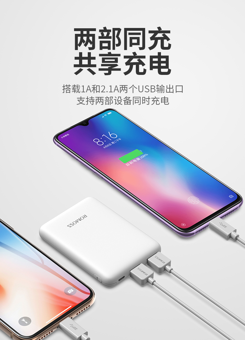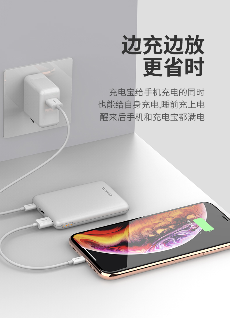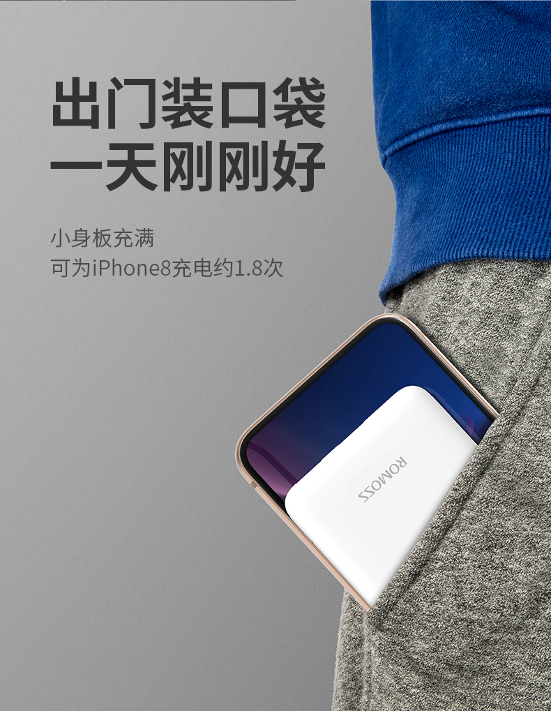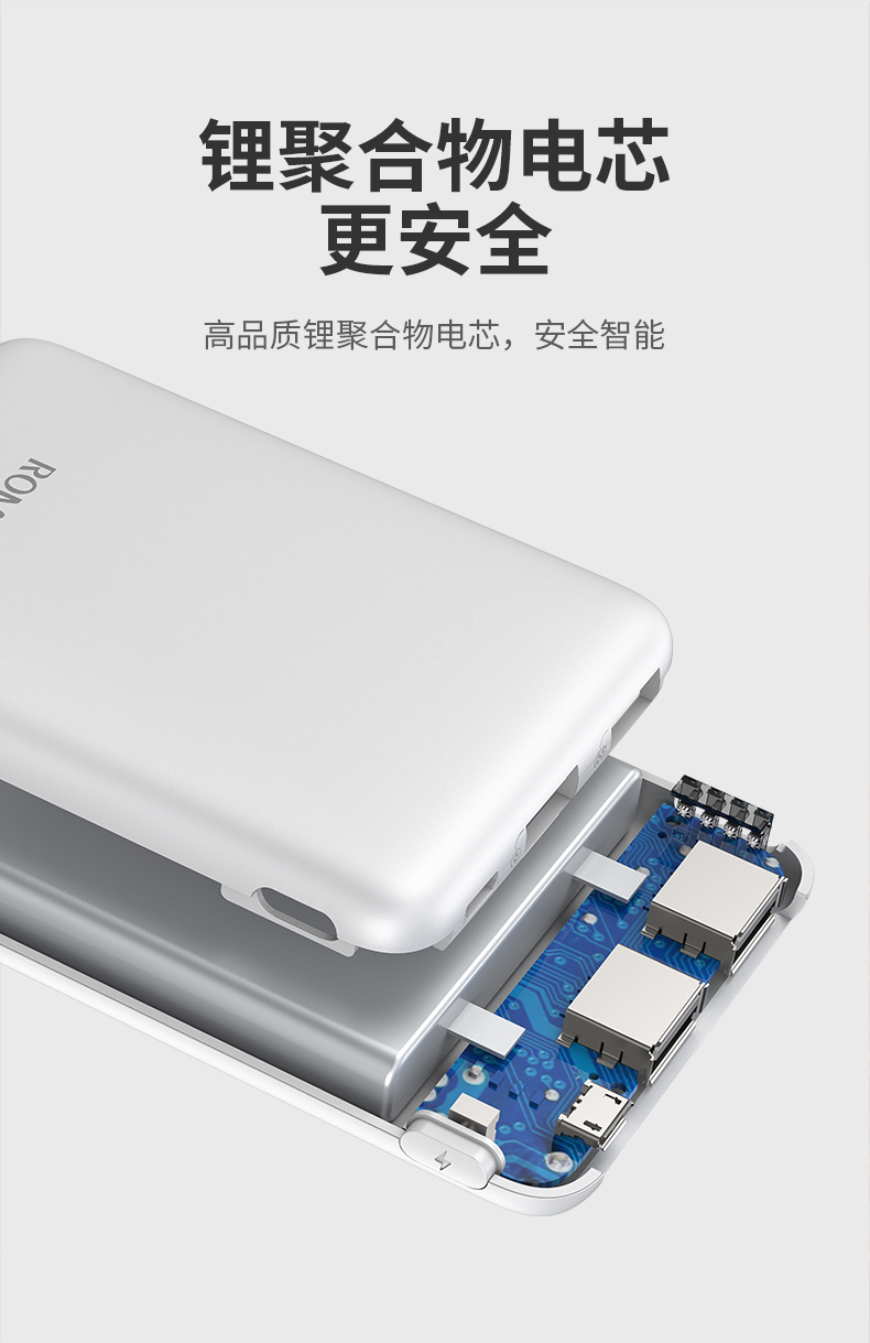 罗马仕(ROMOSS)充电宝5000毫安迷你纤薄聚合物锂离子电芯 移动电源 便携手机充电宝通用 优雅白色