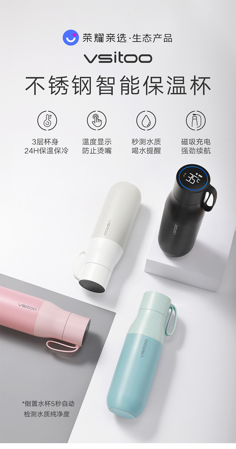 荣耀智能保温杯女高档316不锈钢提醒喝水杯子