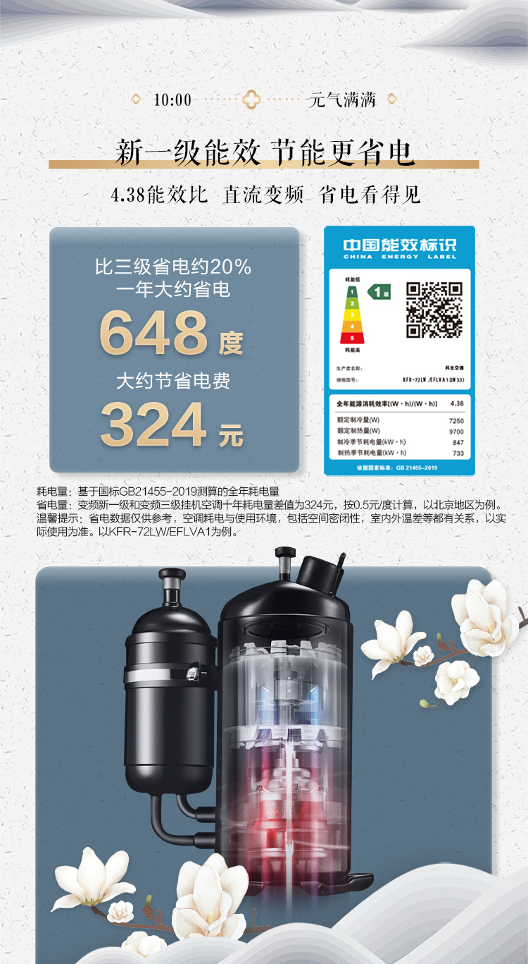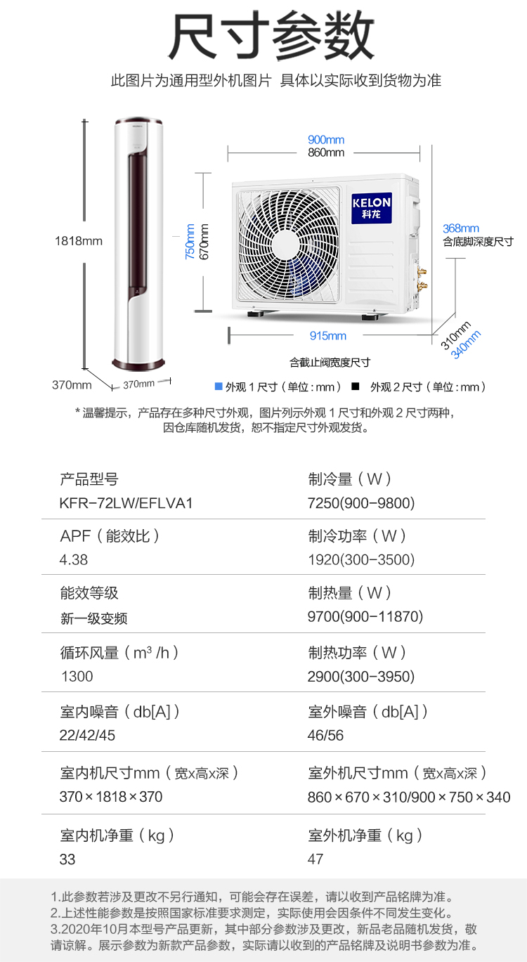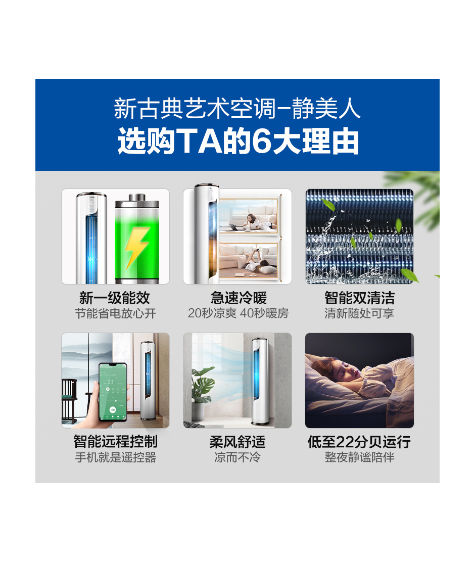新一级能效 家用冷暖柜机空调 静美人 智能立式空调KFR-72LW/EFLVA1(2N33)